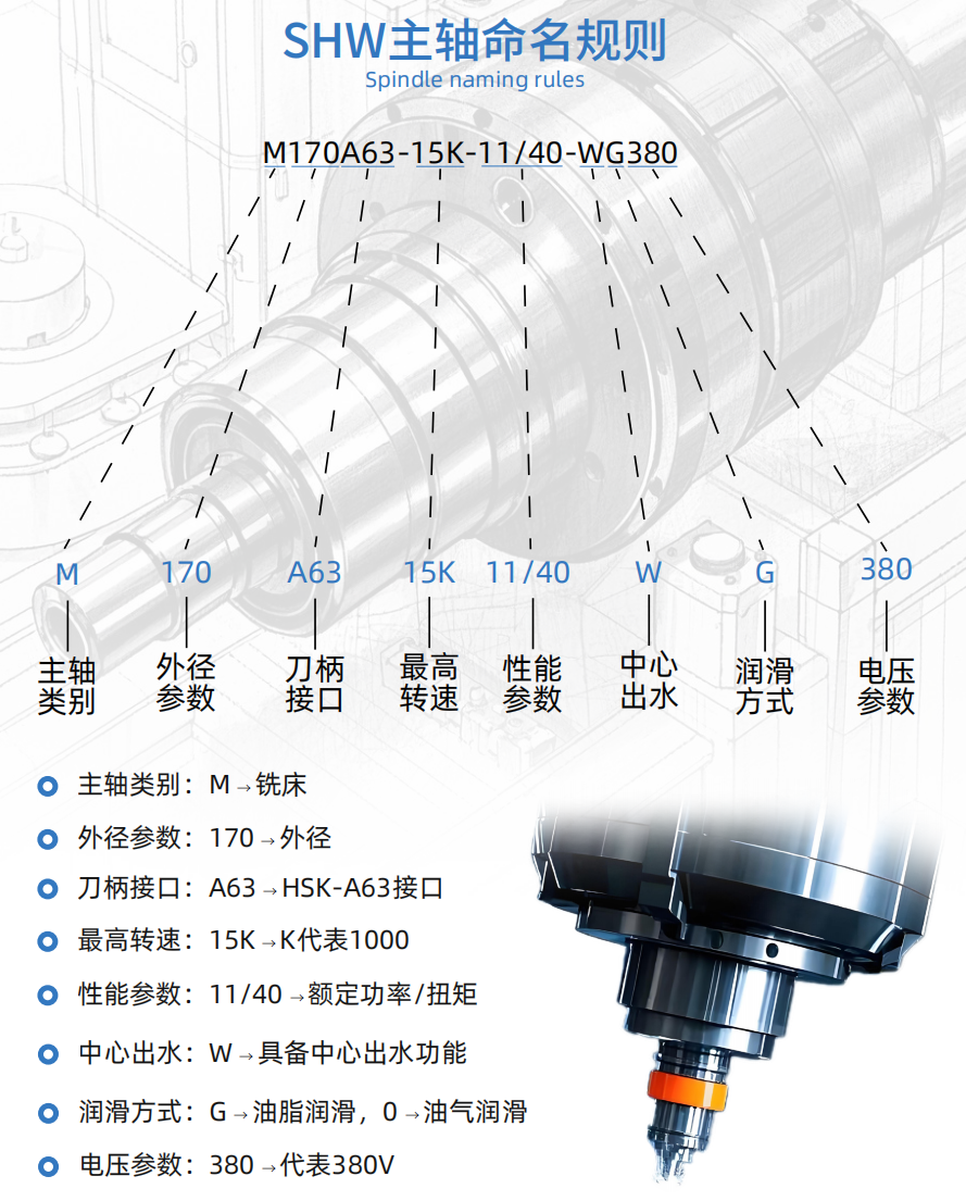 | 主轴全长 Spindle OL | L[mm] | 528 | 572 | 695 | 777 | ||||||||||